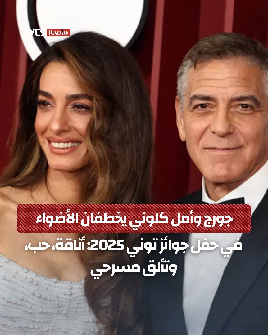 ‎شهدت السجادة الحمراء لحفل توزيع جوائز “توني” السنوي تألقاً لافتاً للنجم العالمي جورج كلوني وزوجته المحامية والناشطة الحقوقية أمل كلوني، في واحدة من أكثر اللحظات اللافتة في النسخة الـ78 من الحدث المسرحي الأبرز في الولايات المتحدة.