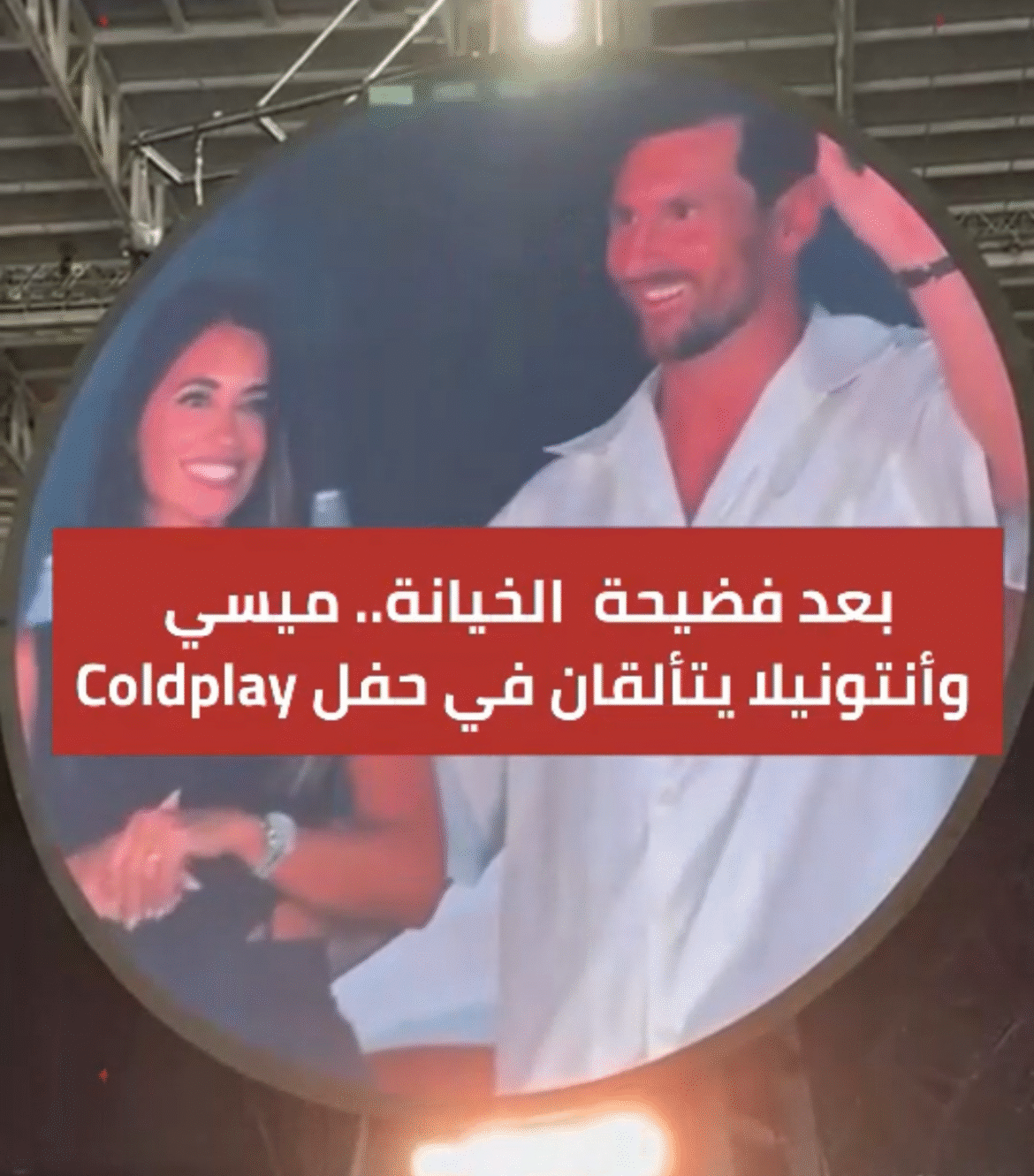 اللقطة التي تم تداولها بكثافة عبر مواقع التواصل، أظهرت الزوجين وهما يبتسمان بخجل، فيما وجّه المغني الرئيسي كريس مارتن تحية خاصة لميسي قائلاً: