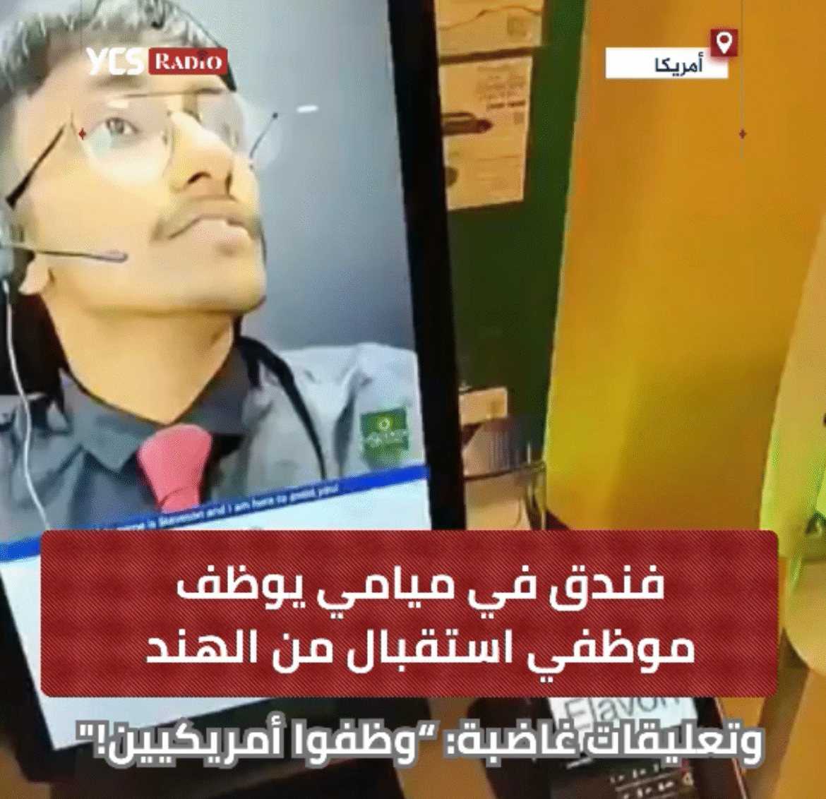 أثار مقطع فيديو انتشر مؤخرًا على مواقع التواصل الاجتماعي موجة من الجدل والغضب في الولايات المتحدة، بعد أن أظهر نزلاء في أحد فنادق ميامي يتحدثون إلى موظف استقبال عبر شاشة كبيرة، يتواصل معهم من الهند عبر مكالمة فيديو.