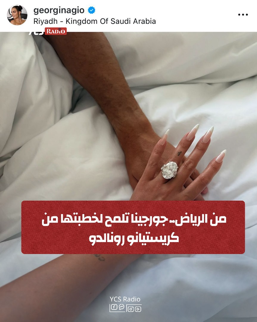 نشرت جورجينا رودريغيز صورة لها من العاصمة الرياض وهي ترتدي خاتم زفاف لامع، ما أثار موجة من التساؤلات بين متابعيها حول إمكانية إتمام خطوبتها من نجم كرة القدم العالمي كريستيانو رونالدو.