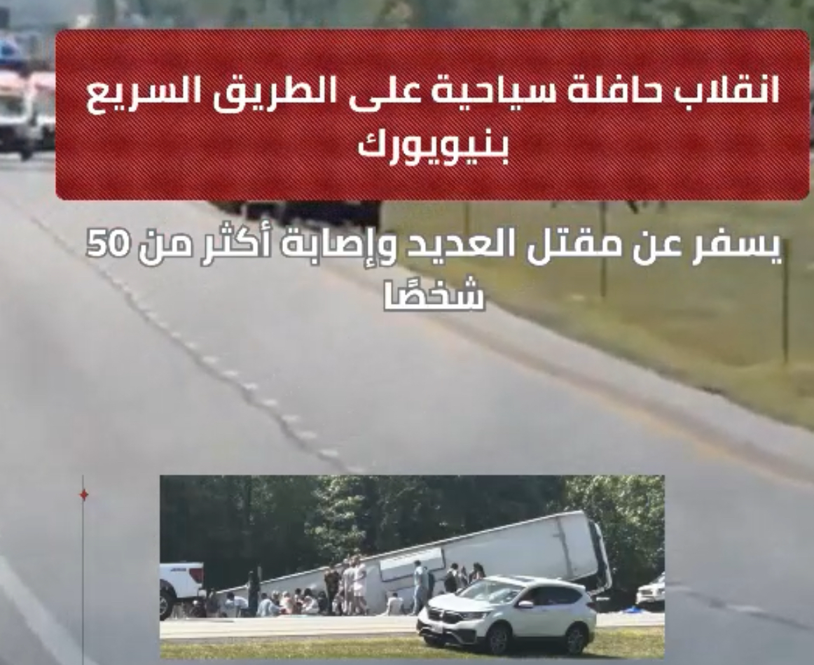 شهدت ولاية نيويورك، اليوم الجمعة، حادثة مأساوية إثر انقلاب حافلة سياحية على الطريق السريع I-90 قرب بلدة بمبروك شرق مدينة بوفالو.