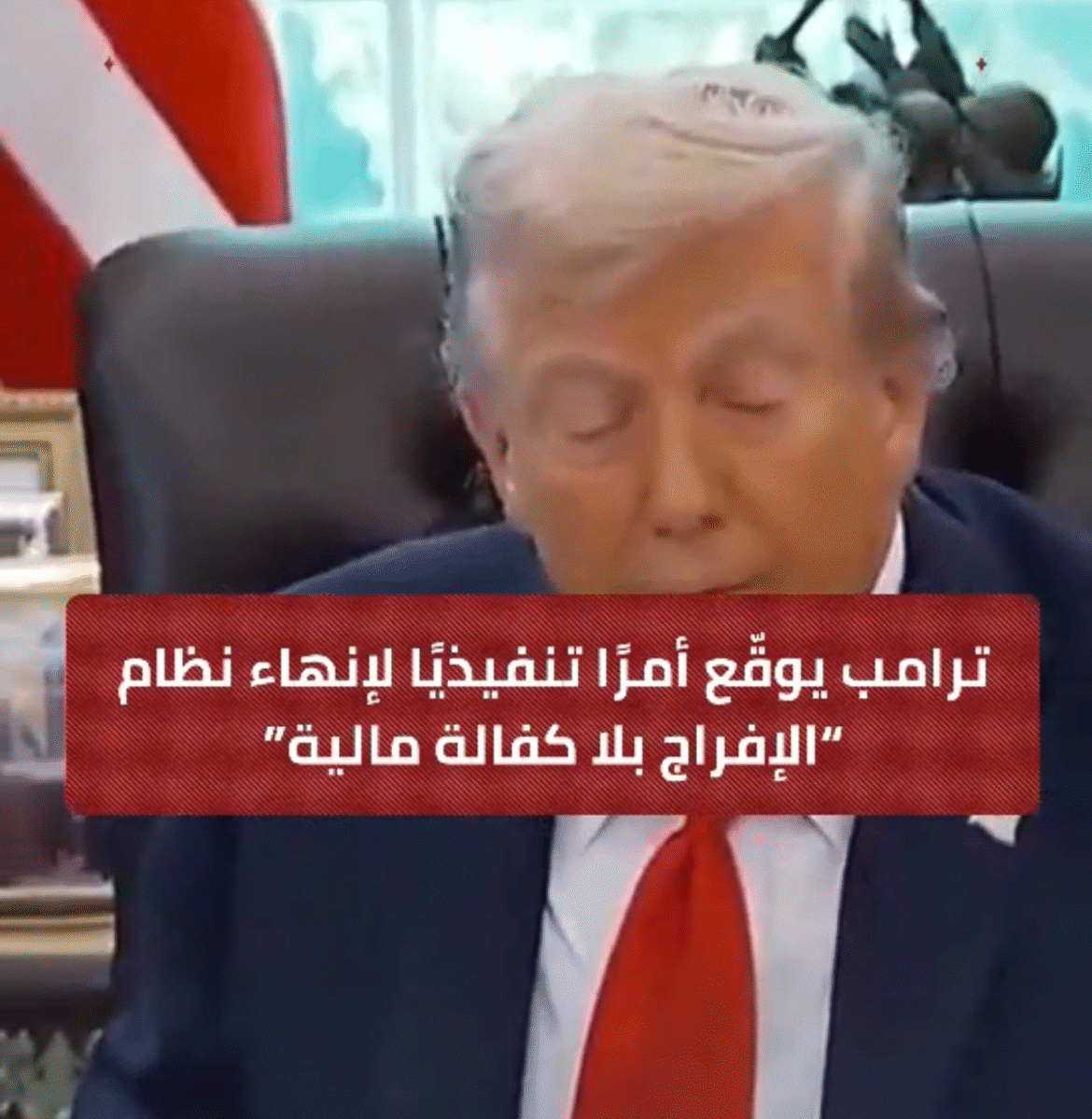 وقّع الرئيس الأميركي دونالد ترامب أمرًا تنفيذيًا يقضي بإنهاء العمل بنظام الإفراج بلا كفالة مالية (Cashless Bail)، وهو النظام الذي يسمح للموقوفين على ذمة قضايا معينة بالخروج من السجن من دون دفع مبالغ مالية.