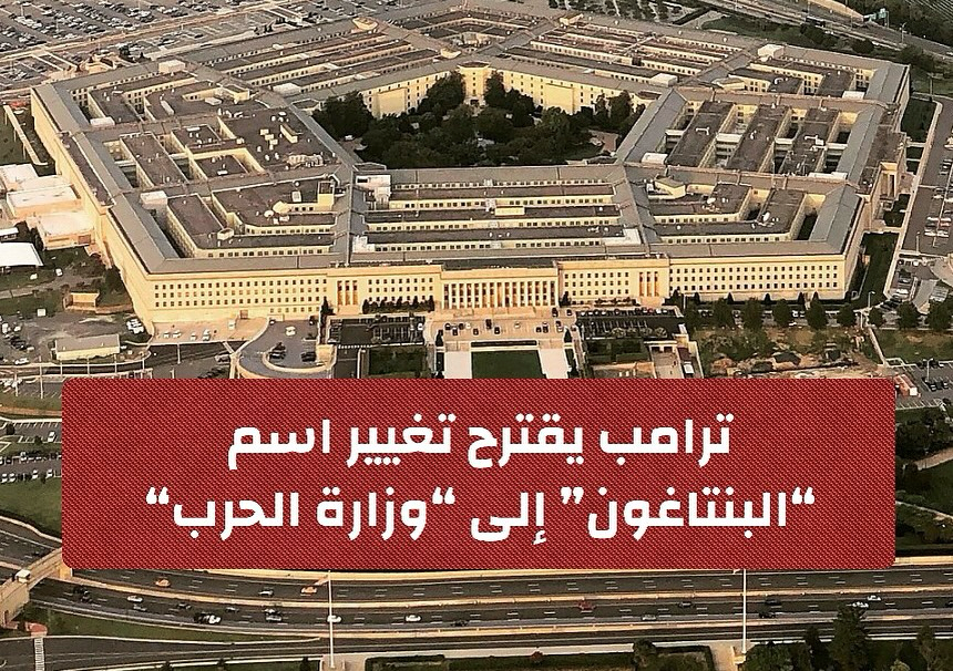 قدّم الرئيس الأمريكي دونالد ترامب اقتراحًا لتغيير اسم وزارة الدفاع الأمريكية، المعروف بـ”البنتاغون”، إلى “وزارة الحرب”، معتبرًا أن الاسم الحالي يعكس طبيعة دفاعية أكثر مما ينبغي.